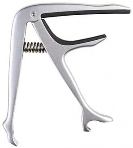 Kapodastr Joyo JCP02 pro akustickou a elektrickou kytaru, vyroben z kovu, stříbrný.