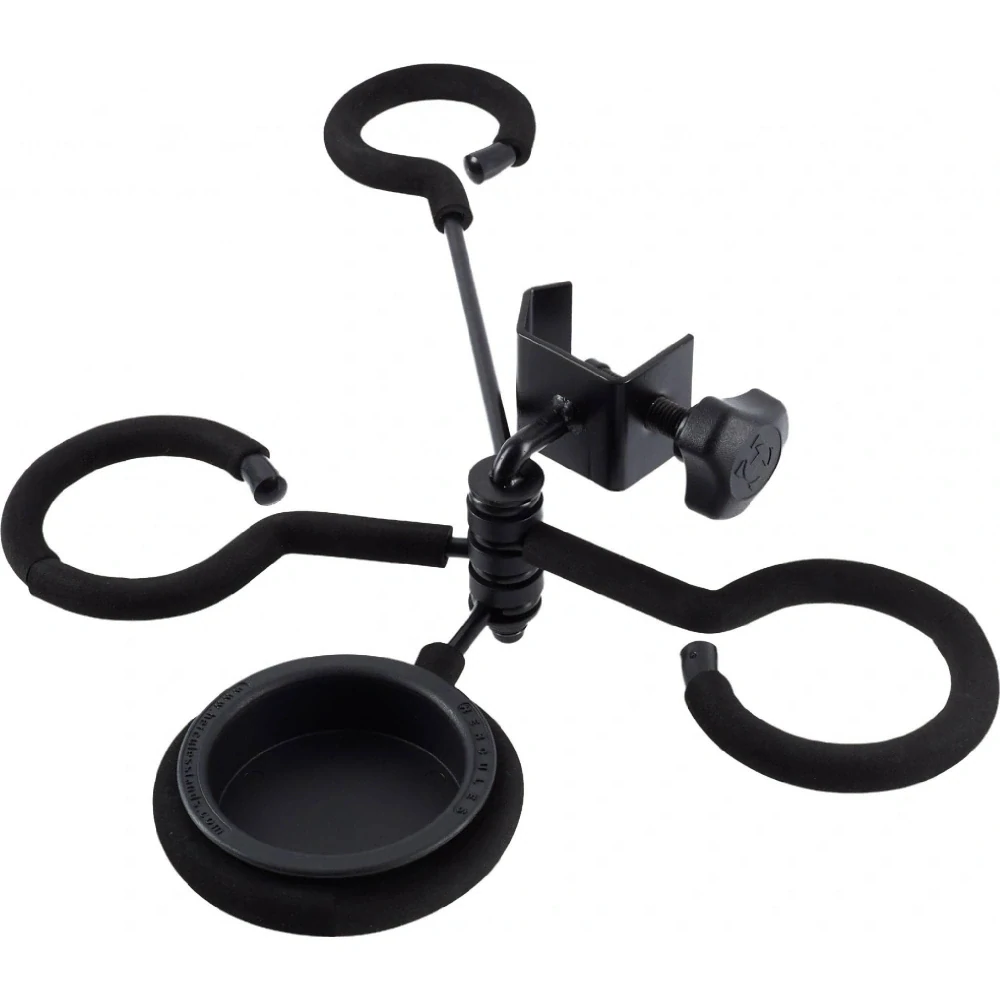 Držák na dusítko HERCULES HA100 je stojan na dusítka žesťových nástrojů (kornetu, trubky, trombonu, lesního rohu). Stojan lze přichytit k většině notových a mikrofonních stojanů (průměr 8 až 30 mm). Prstencové úchyty jsou pro komfort dusítek pokryté speciální pogumovanou hmotou.